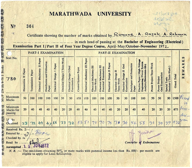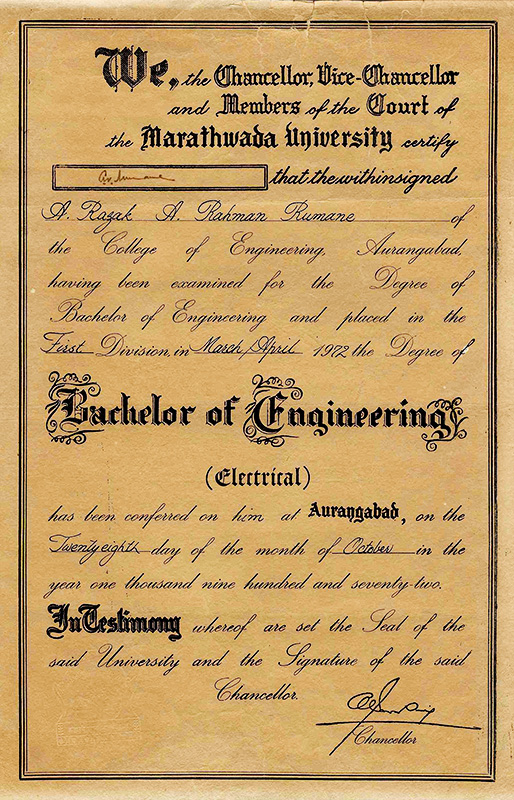 : Government College of Engineering, Marathwada University, (now, Dr. Babasaheb Ambedkar University) Aurangabad, India