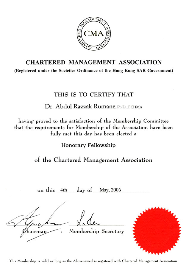 Honorary Fellowship of Chartered Management Association (Hong Kong) |