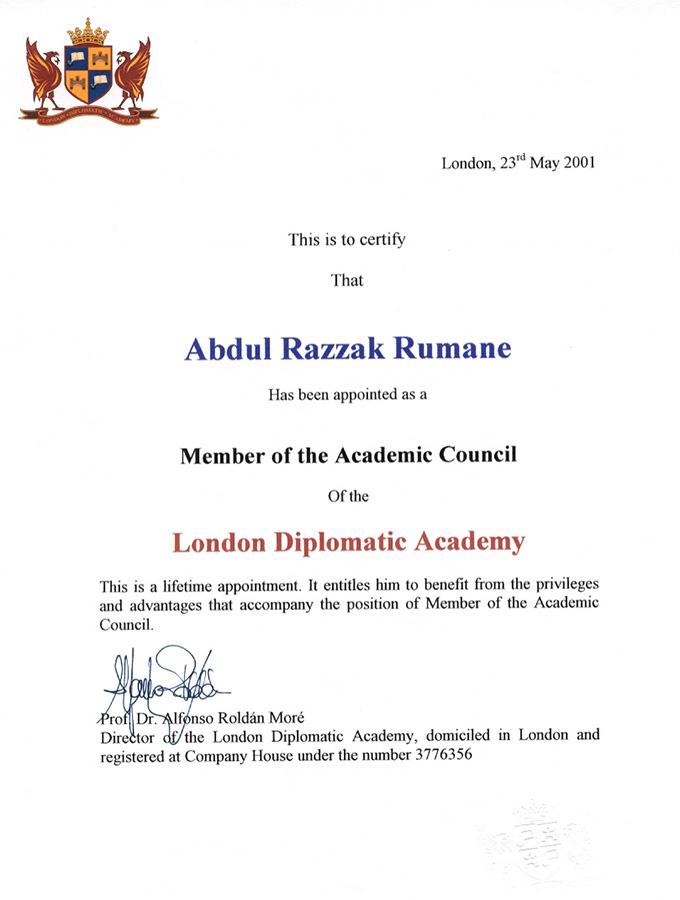 Member of London Diplomatic Academy |