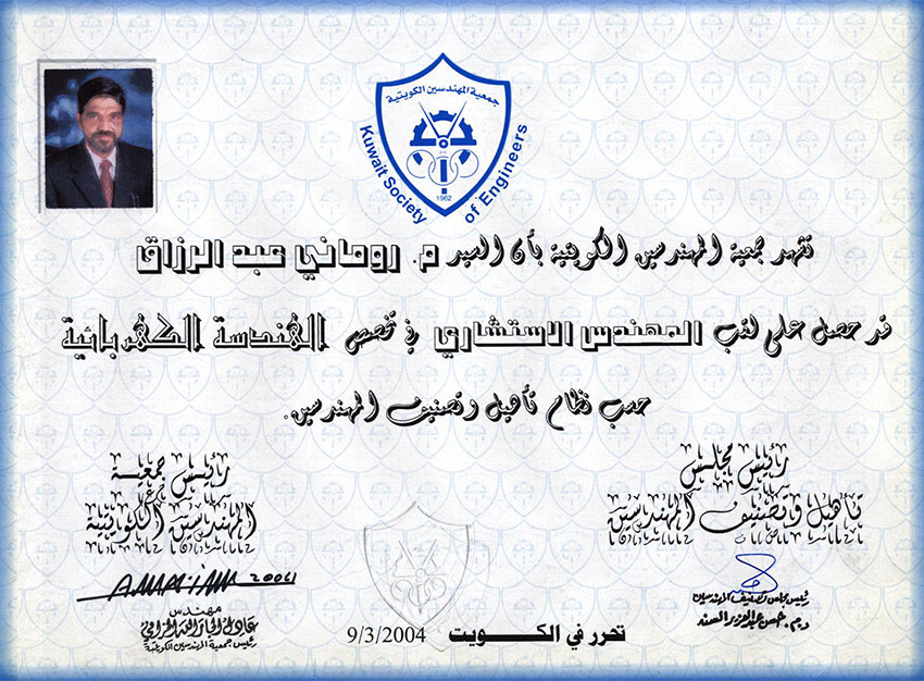 Member of Kuwait Society of Engineers (M 6923)
