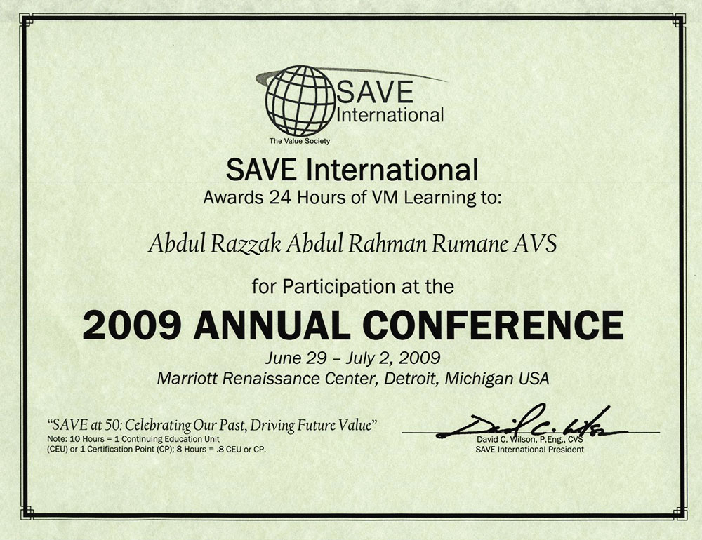 7. Dr. Abdul Razzak Rumane presented technical seminar at 2011 International Lean & Six Sigma Conference held at San Antonio, Texas, USA. The topic of seminar was “Application of Six Sigma DMADV Tool in Construction Projects”. The seminar was categorised under “Design and Innovation for Six Sigma”.