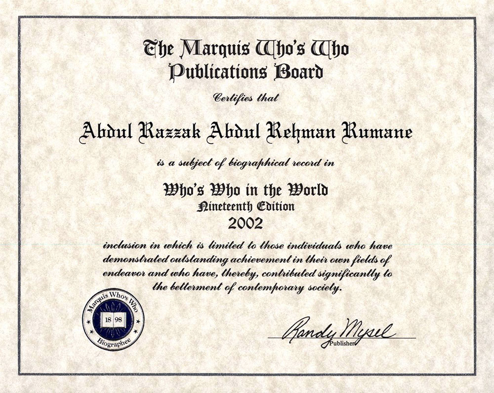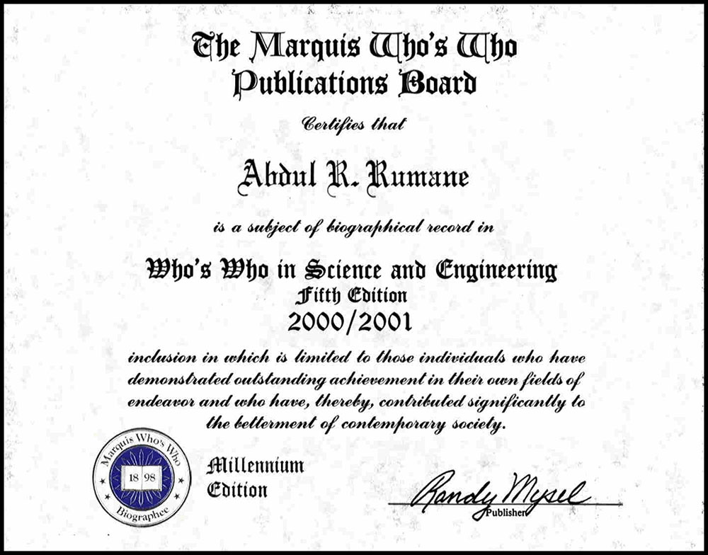 The inclusion in the Marquis publications is limited to those individuals who have demonstrated outstanding achievement in their own field of endeavour, and thereby contributing significantly to