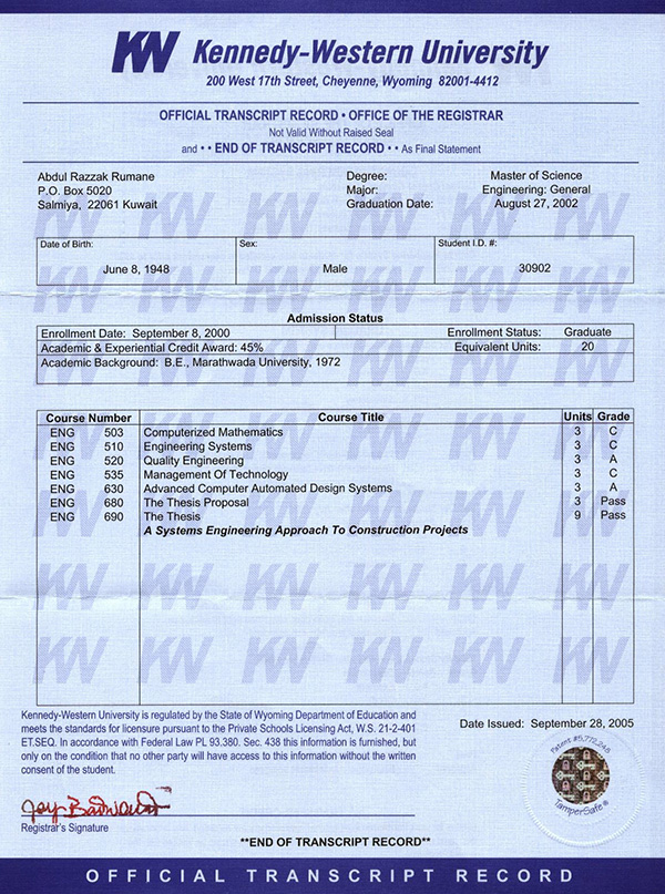 : Government College of Engineering, Marathwada University, (now, Dr. Babasaheb Ambedkar University) Aurangabad, India