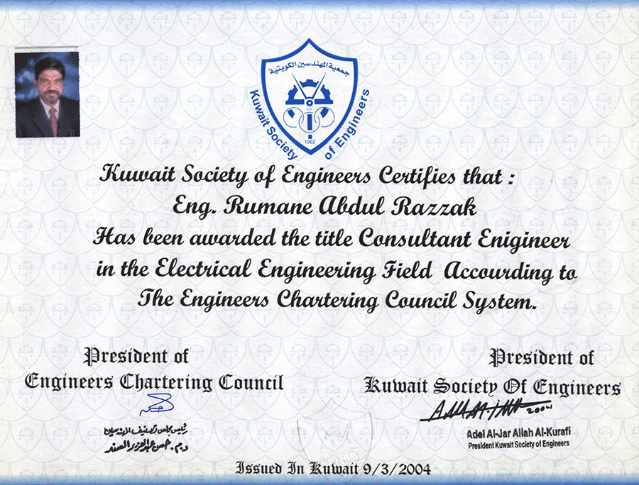 Member of Kuwait Society of Engineers (M 6923)