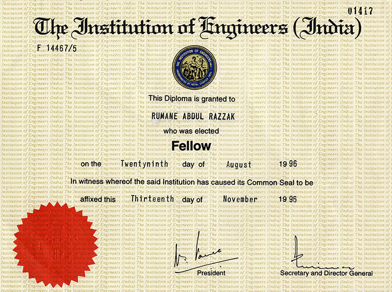 Fellow of The Institution of Engineers (India) (F/014467/5) |