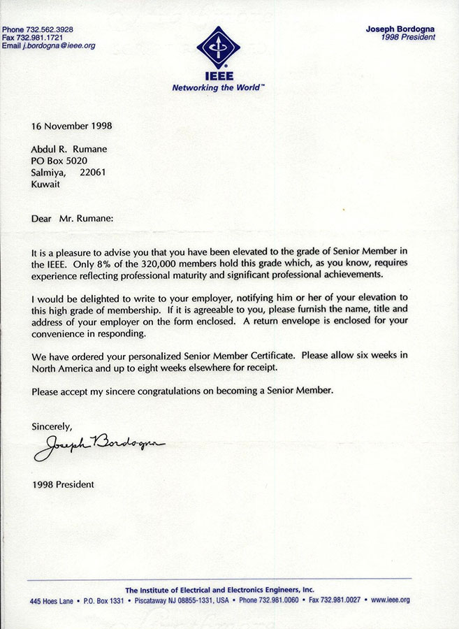 Senior Member of I.E.E.E-U.S.A. (SM 01699594) |