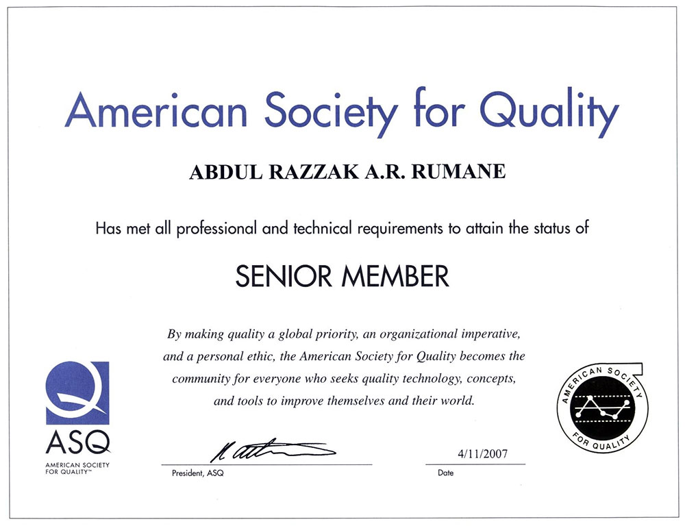 Senior Member of American Society for Quality (63377835) |