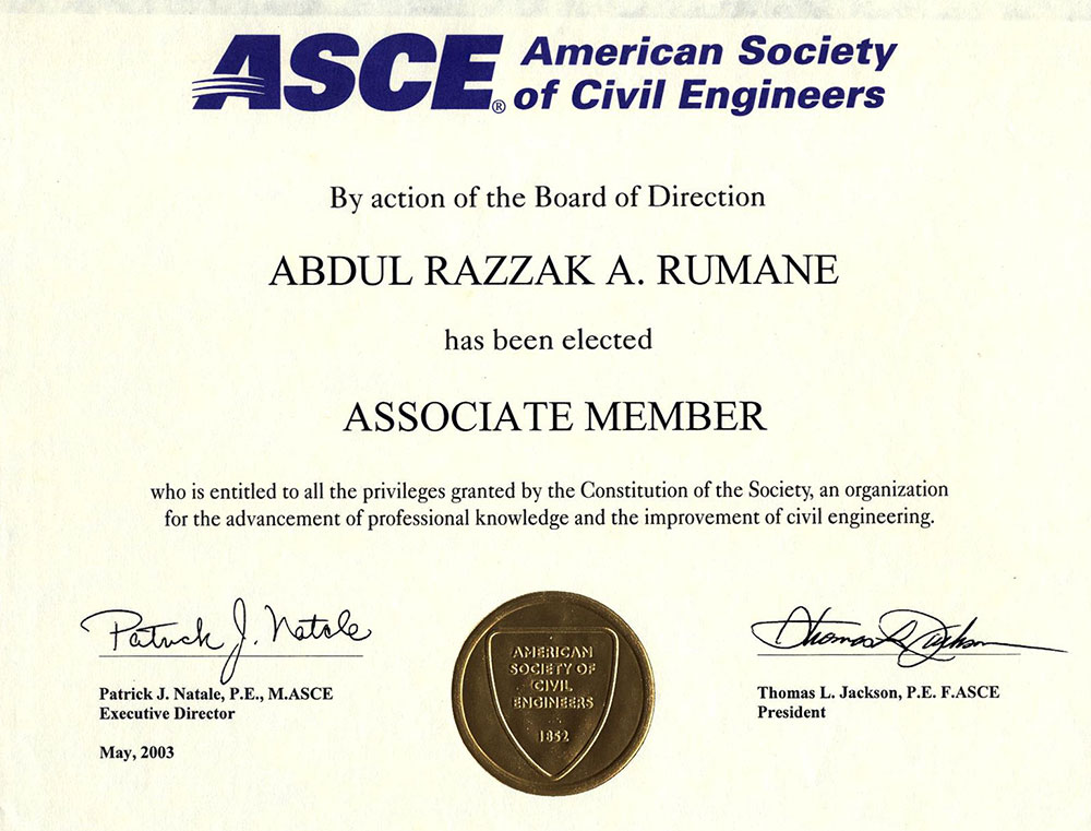 Associate Member of American Society of Civil Engineers - U.S.A. (A290284) |